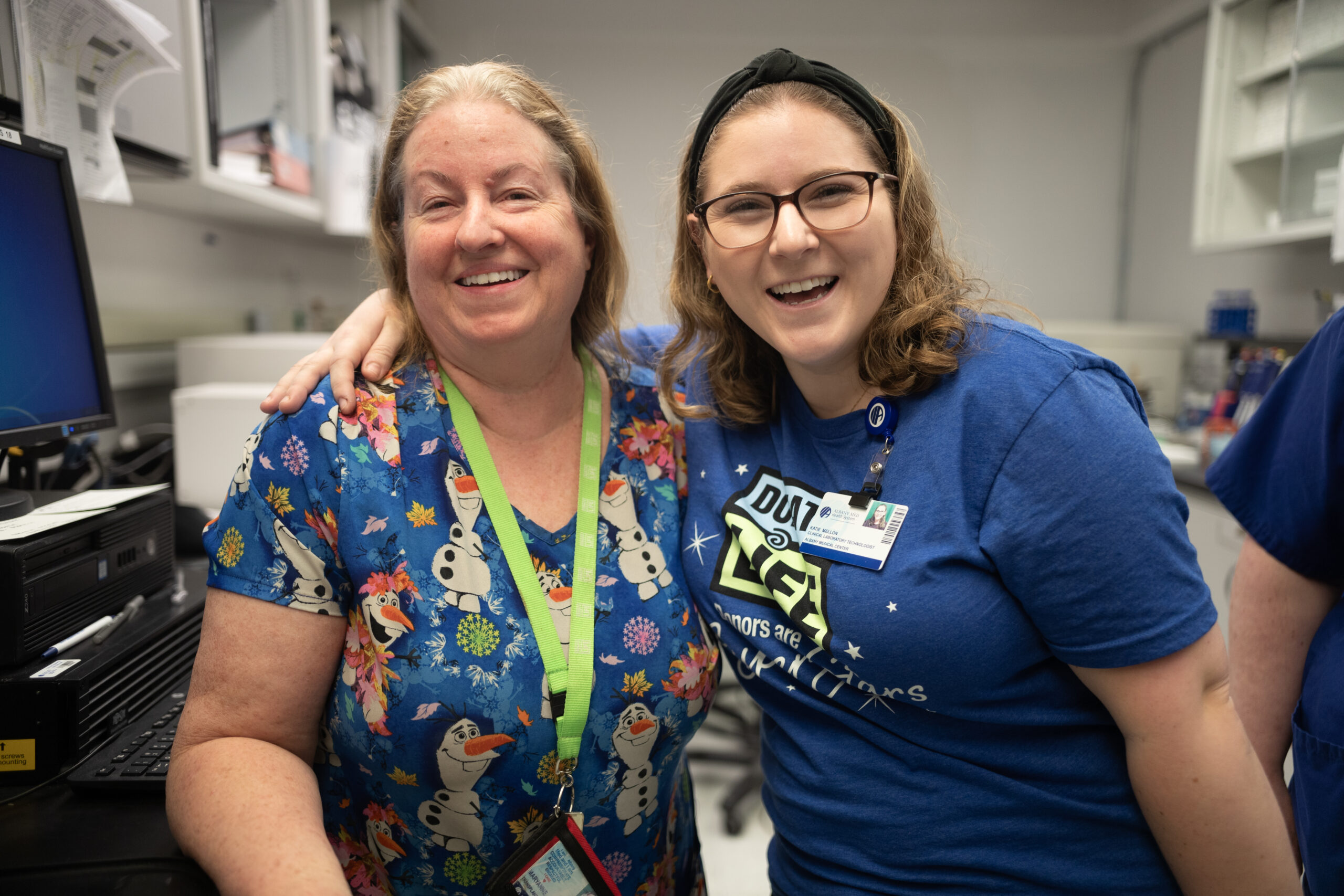 Below: ACPHS alumni Mackey and Mellon in the Albany Med Transplant Immunology Laboratory