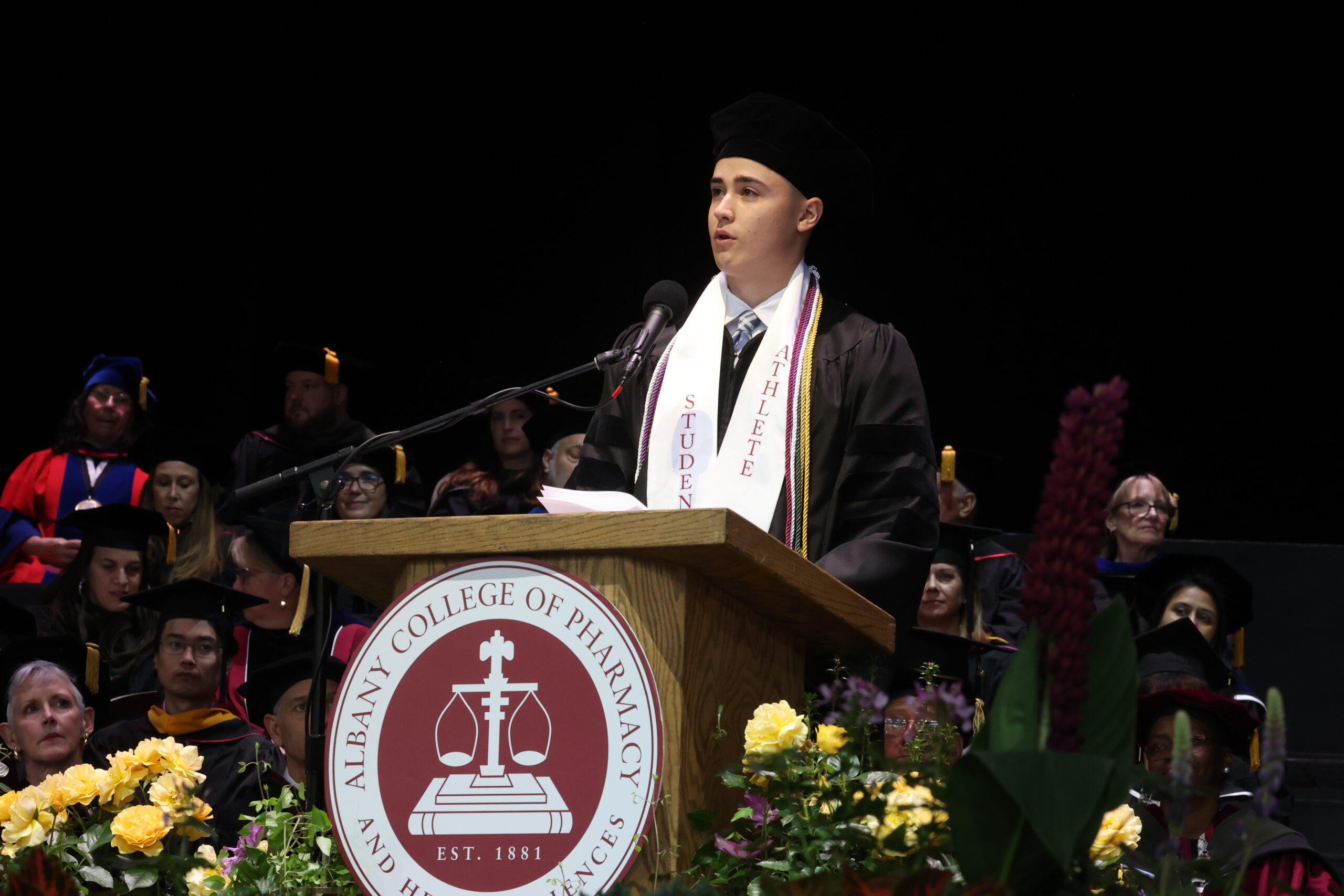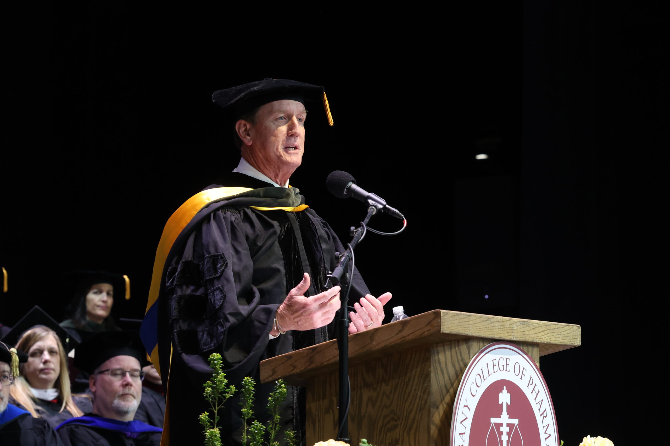 A time-honored procession punctuated by bagpipes from Schenectady Pipe Band and an inspiring rendition of the National Anthem by ACPHS BS/MS Pharmaceutical Sciences graduate, Adrian Belrad ’24, and ACPHS students Nana Akua Sefa Adonu ’26 and Lauren Trackey ’27, both PharmD candidates kicked off the festivities. Board of Trustees Chair, Walt Borienok opened the ceremony.